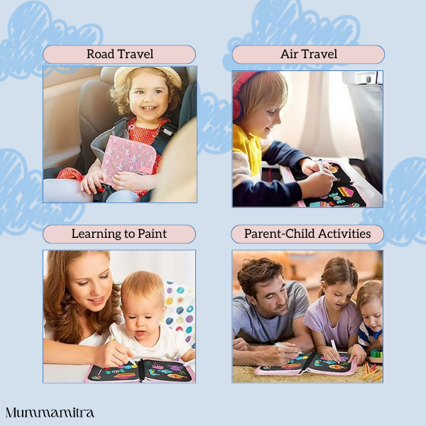 By engaging kids with hands-on drawing and coloring activities, it encourages creativity and keeps them entertained without screens.